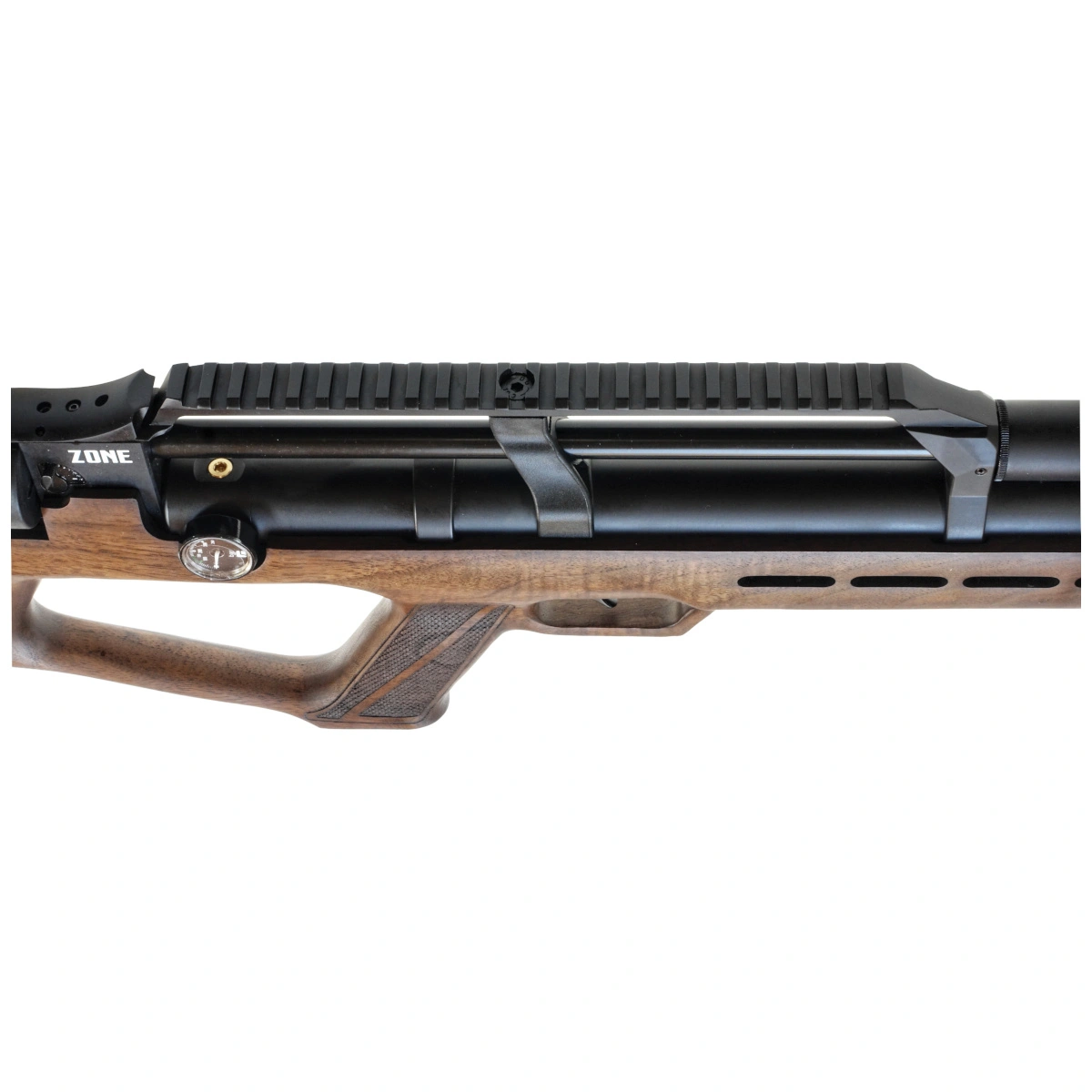 - calcio bullpup in legno noce e calciolo in gomma